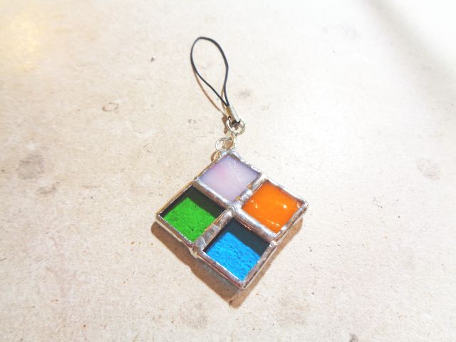 ステンドグラス体験教室、キラキラ輝くカラフルなガラスを組み合わせてストラップなどオリジナル小物が作れます。